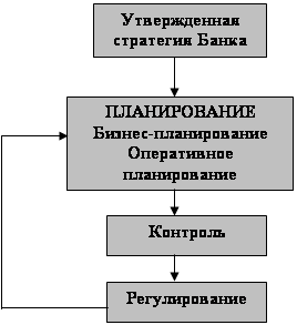 Планирование – решает задачу конкретизации и реализации стратегических целей и задач в количественной оценке на различных уровнях детализации и временных отрезках деятельности Банка.