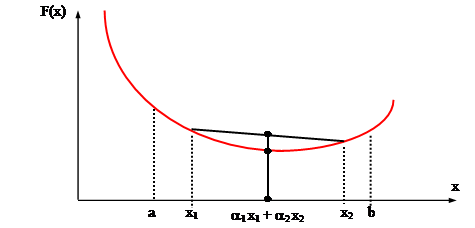 Напомним, что выпуклой функцией f действительной переменной х на интервале (а,b) называется такая функция, для которой выполняется неравенство