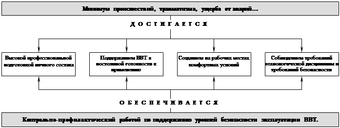 Под безопасной эксплуатацией ВВТ понимается свойство системы эксплуатации «человек-машина-среда» не создавать угрозы здоровью и жизни л/с, сохранности ВВТ и окружающей среды.