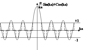 Провели параллельные прямые оси абсцисс и находим точки пересечения этих прямых с графиком, опускаем перпендикуляры и находим корни уравнения (3). Эти участки обозначены жирными линиями. Таким образом допустимые значения Е(к) имеют дискретный характер (зонный). Если ось (Ка) перевернуть в вертикальное положение, то получим картину расположения энергетических зон, разрешенных и запрещенных.