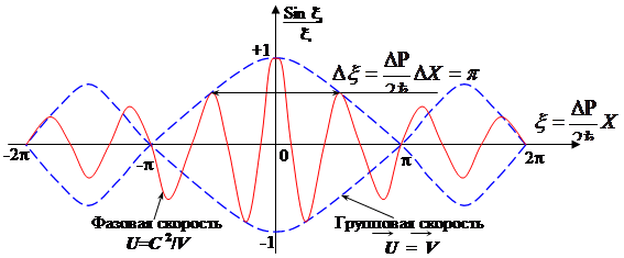 т.е. она становится больше скорости света, поскольку V< с. Это говорит о том, что фазовая скорость не может соответствовать движению частицы или же переносу какой-либо энергии.