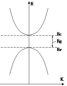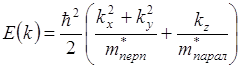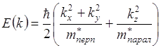 Энергетический спектр электронов и дырок в координатах Е – К. В германии и кремнии зона проводимости описывается двумя значениями масс.
