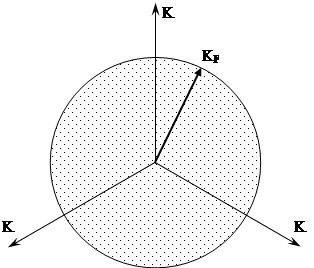 отделяет заполненные электронами состояния от незаполненных состояний. Сфера Ферми. Все состояния с К<КF являются занятыми.