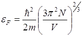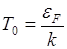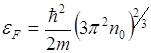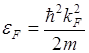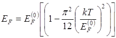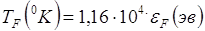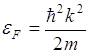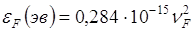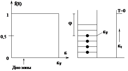 Энергия, отсчитываемая от дна зоны, при которой величина f(E) скачком изменяется от 1 до 0, называется энергией Ферми eF В данном случае