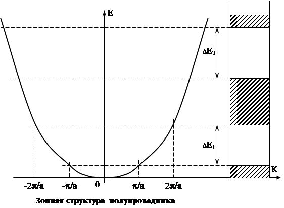 На рисунке заштрихованные области запрещенных значений энергии (энергетические щели).