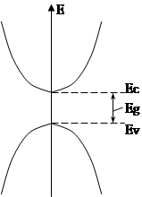 В полупроводниках положение уровня Ферми соответствует формально потолку валентной зоны, но это неверно. Пусть с потолка валентной зоны (с энергией eV) отдельный электрон от возбуждения перешел на дно (с энергией eC) пустой зоны проводимости.