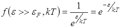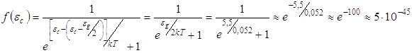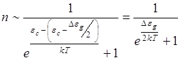 Если концентрация электронов в зоне проводимости мала, то вероятность заполнения каждого уровня мала по сравнению с единицей в знаменателе, то ею можно пренебречь.