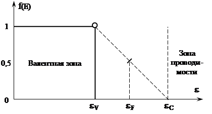 На рисунке уровень Ферми находится в середине запрещенной зоны, учитывая симметрию распределения Ферми – Дирака относительно энергии Ферми eF и очевидную симметрию функции f(E) в промежутке между потолком валентной зоны и дном зоны проводимости.