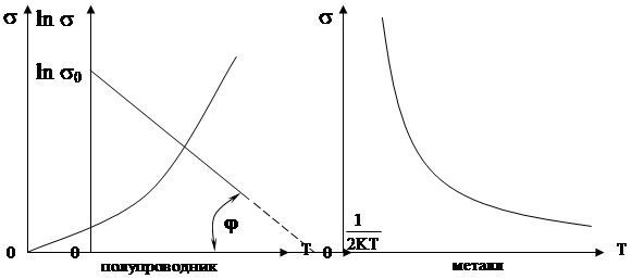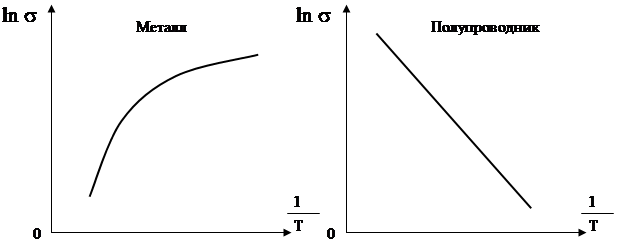 2. Различие полупроводников и металлов проявляется в характере зависимости электропроводности от температуры.