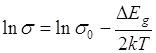 где Ea – энергия активизации, она различна для разных интервалов температур.