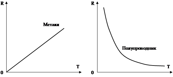 Для полупроводников сопротивление с ростом температуры быстро уменьшается