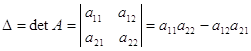 то определителем второго порядка, соответствующим такой матрице, назовем число, равное а11 а22 — а12 а21 и обозначаемое одним из символов: