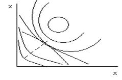 Из каких вариантов должен быть выбран наилучший? Иными словами, среди каких точек пространства нужно искать оптимум. Ответ на этот вопрос связан с таким элементом оптимизационной задачи, как множество допустимых решений. В некоторых задачах допустимыми являются любые комбинации чисел х1, х2,…,хn то есть множество допустимых решений - это все рассматриваемое пространство.