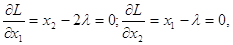 L(х1,х2; l) = х1х2 - l(2х1 + х2 - А),
