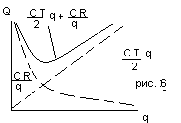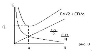 отсутствии заказов, тогда q/2 – средний запас в течение ts (равенство q/2= qср следует рассматривать как приближенное. Точность его тем выше, чем больше R) q/2* C1 ts затраты на хранения в интервале ts.