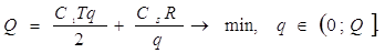 Обозначим через Q неизвестную пока суммарную стоимость создания запасов или, что то же самое, целевую функцию. Задача моделирования состоит в построении целевой функции Q = Q(q). Суммарные издержки, будут состоять из издержек по завозу и хранению товара.
