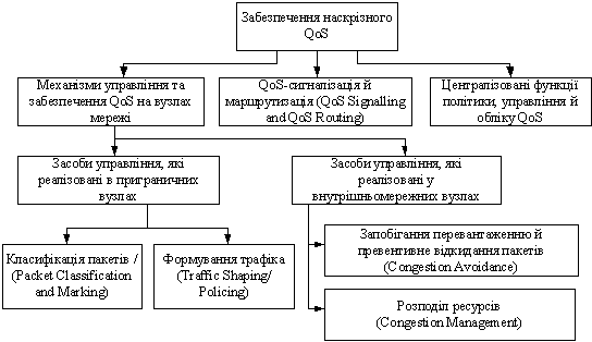 Забезпечення наскрізного QoS "з кінця в кінець" (end-to-end) у рамках гетерогенної ТКС припускає використання таких засобів управління (рис.4):