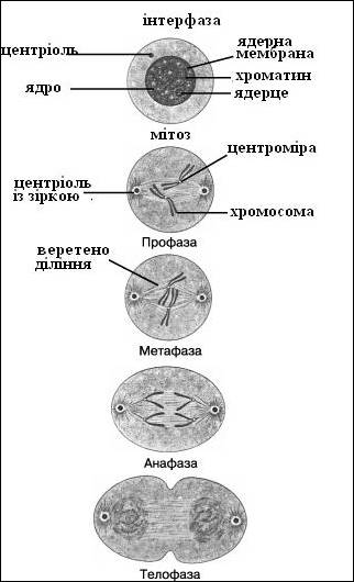 Мітоз, або непряме ділення, - основний спосіб розмноження еукаріотичних клітин, що обумовлює, зокрема, можливість збільшення їх біомаси, зростання і регенерацію. Мітоз складається з чотирьох фаз.