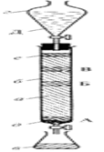 Разделение Цвет проводил в колонке, показанной на рис. 1. Смесь веществ А, Б и В – природных пигментов, первоначально находящихся в зоне е, – разделяется при приливании соответствующего растворителя Д (элюент) на отдельные зоны.