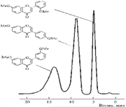 Рис. 5. Хроматографическое разделение природных пигментов (флавонов и изофлавонов)