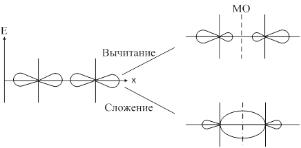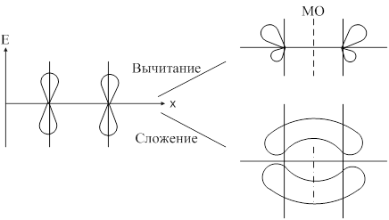 Образование связывающей и разрыхляющей МО из исходной АО: