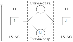 Согласно методу валентных связей ковалентная связь образуется не путем передачи, а путем обобществления неспаренных электронов с антипараллельными спинами по 1-му от каждого атома. Образовавшаяся в этом случае электронная пара принадлежит обоим атомам. ![]()