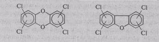 Еще более опасны по своим отдаленным последствиям по сравнению с хлорированными ароматическими углеводородами полихлорированные полициклические соединения типа полихлордибензо-п-диоксинов и полихлордибензофуранов: