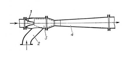 1 – конфузор на подаче побудительной среды (вода, газ);