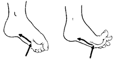 | Ходьба на пятках | M. tibialis anterior, mm. extensores digitorum и др. | N. peronaeus | IV — V поясничные сегменты |