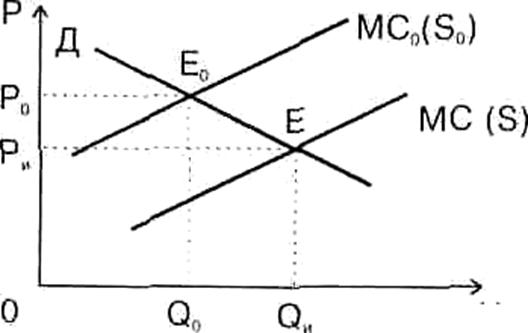 ). Иначе говоря, должно быть смещение кривой предложения (S) с целью оптимизации цены на товар, производство которого загрязняет окружающую среду.