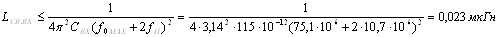 рівні й вибираються з діапазону 200 – 250 пФ.Візьмемо їхню ємність 200 пФ. Індуктивності контурів також рівні й обчислюються по формулі: