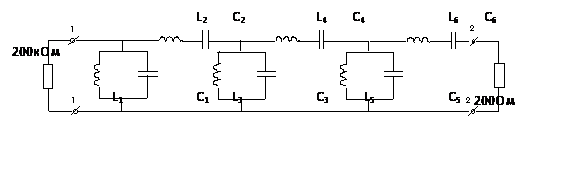 Навантаження фільтра на клемах 2-2 R2=200Ом. Вхід фільтра (клеми 1-1) навантажено на більший опір 200 Ом, тому можна вважати r1=