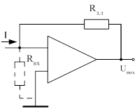 У якості перетворювача струму у напругу використаємо схему з інвертуючим підсилювачем, у якого опір вхідного резистора приблизно дорівнює нулю (рисунок 1).