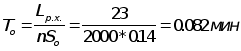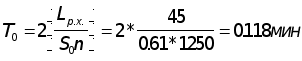 расчет основного машинного времени отработки в мин: