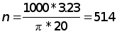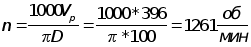 5) расчет числа оборотов шпинделя по расчитанной скорости