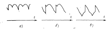 Ориентировочные формыкривой напряжения на входе сглаживающего фильтра для рассматриваемых трехфазных регулируемых выпрямителей изображены на рис. 6.