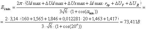 Определим потери выпрямленного напряжения, обусловленные коммутацией, при минимальном и максимальном токе нагрузки: