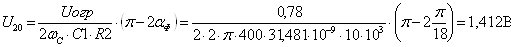 2. Определяем емкость разделительного конденсатора С2. Конденсатор С2 не пропускает постоянную составляющую выходного напряжения интегратора, которая возникает из-за смещения «нуля», а также из-за неидентичности диодов VD1, VD2, на вход компаратора.