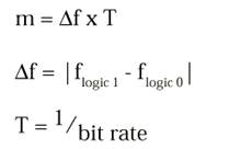 MSK - это продолжение частотной модуляции, при которой разница частот "1" и "0" по модулю всегда равны половине скорости передачи данных. Т.е. индекс модуляции m=0.5, определяется следующим образом: