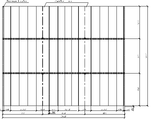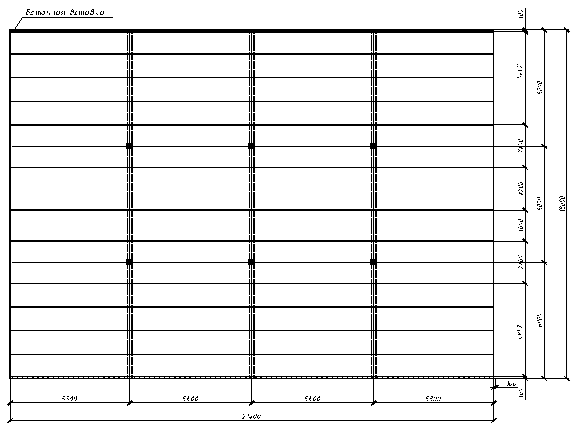 Первый вариант – балки расположены вдоль помещения (рис. 1.1). Характеристики варианта: плиты 6,00х1,20 – 10 шт., 6,00х1,50 – 14шт., 6,30х1,20 – 5 шт., 6,30х1,50 – 7шт.; связевые плиты 6,00х2,20 – 4 шт., 6,3х2,2 – 2 шт.; пролет балок (по осям колонн) 7,40 м.