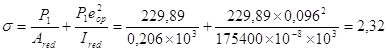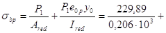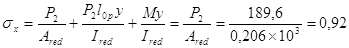 Определение нормальных напряжений в бетоне от внешней нагрузки и усилия предварительного обжатия на уровне центра тяжести приведенного сечения (У=0): в сечении 2-2