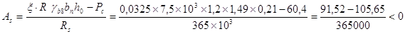 Требуемое сечение арматуры в верхней зоне плиты, как для внецентренно сжатого элемента: