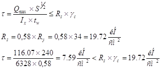 Проверка прочности по касательным напряжениям: