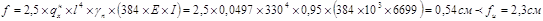 Проверяем прогиб при первом сочетании нормативных нагрузок от собственного веса и веса снега: