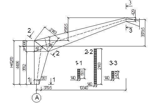 С учетом предварительно принятых размеров элементов рам получим геометрическую схему, приведенную на рис. 3.2.