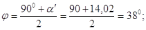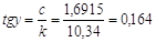 Угол наклона осевой линии ригеля к горизонтали у = 9º30' из соотношения