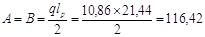 Максимальные усилия возникают в карнизном узле рамы при действии полной расчетной нагрузки (постоянной и временной) по всему пролету рамы: q = 10,86 кН/м.