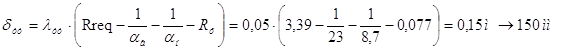 aint = 8,7 Вт/(м2×°С) - по табл. 4*(2), aext = 23 Вт/(м2×°С) - по табл. 6*(2).
