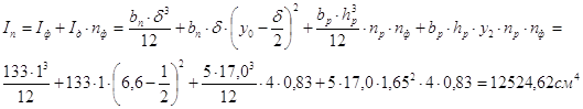 -статический момент фанерной обшивки относительно нейтральной оси: