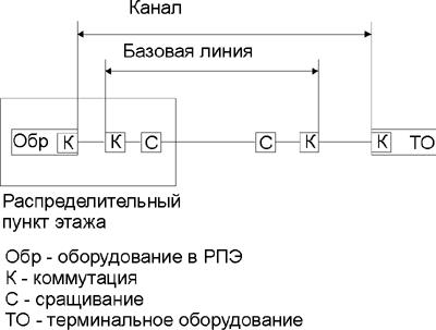 На рисунке ниже представлена модель, используемая для корреляции характеристик кабелей горизонтальной сети с кабелями оборудования (8).